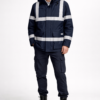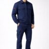 Combinaison de travail ignifugée avec manches longues en tissu résistant.