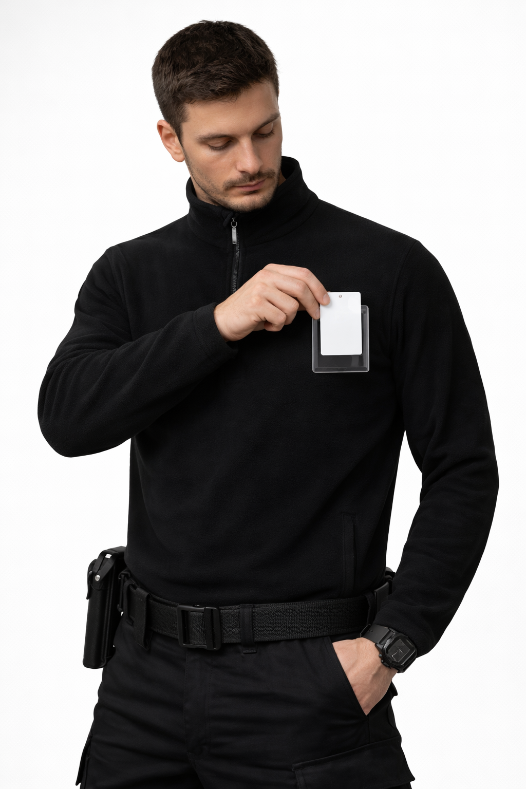 Polaire col camionneur avec porte carte & dos sécurité privée